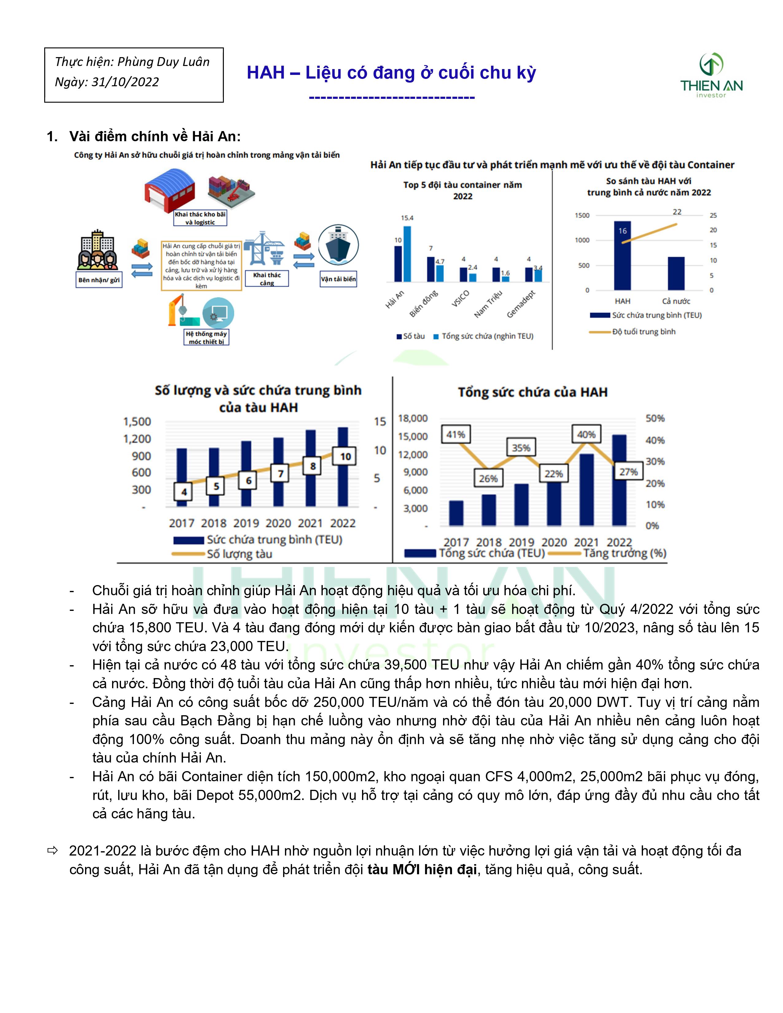HAH - Liệu đã qua đỉnh lợi nhuận? (31/10/2022)
