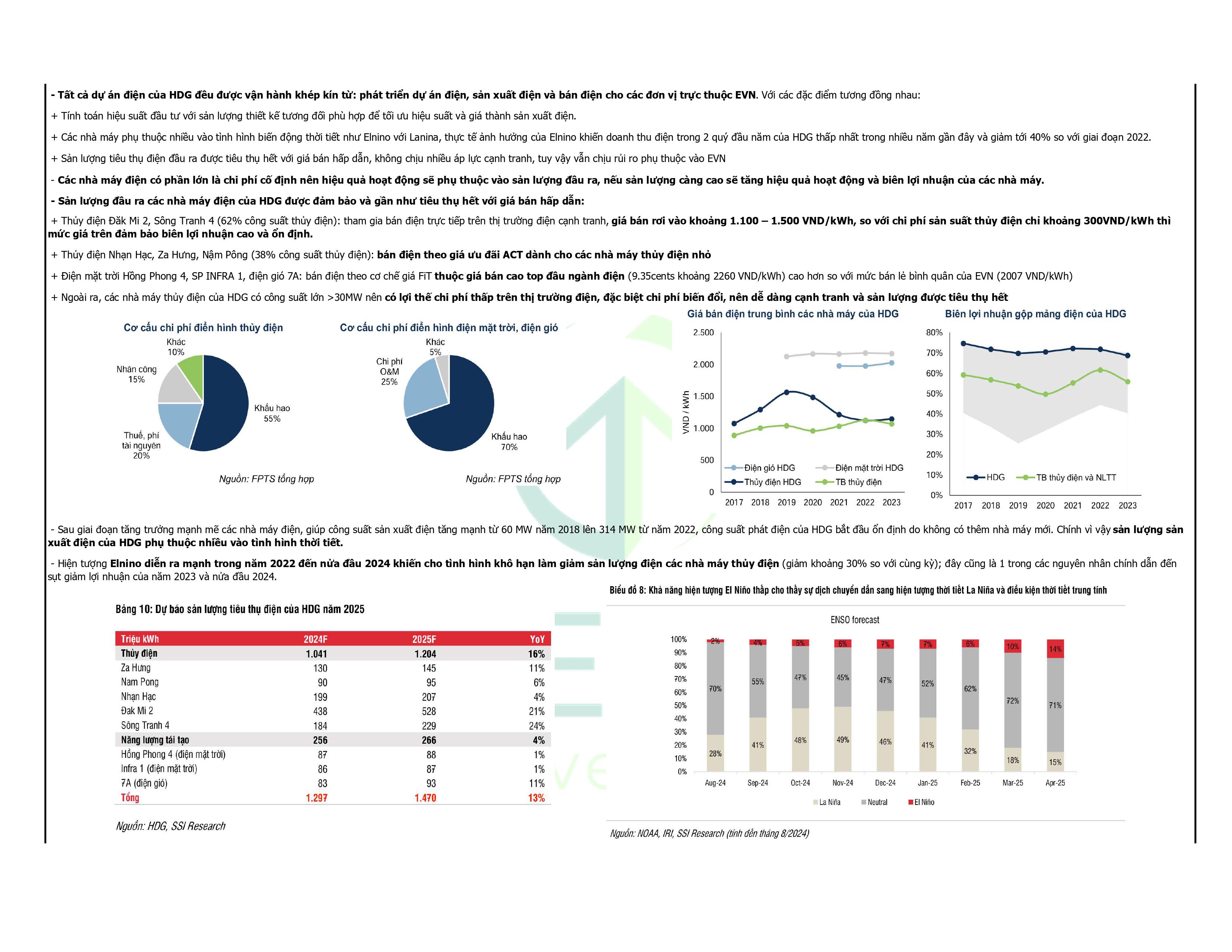 Biểu đồ phân tích hiện tượng thời tiết của NOAA, IRI cho thấy hiện tượng Lanina sẽ phát triển mạnh trong giai đoạn cuối năm nay và tới 2025. Đây cũng là cơ sở quan trọng giúp cho mảng điện của HDG được dự báo sẽ hồi phục và tăng trưởng mạnh mẽ.