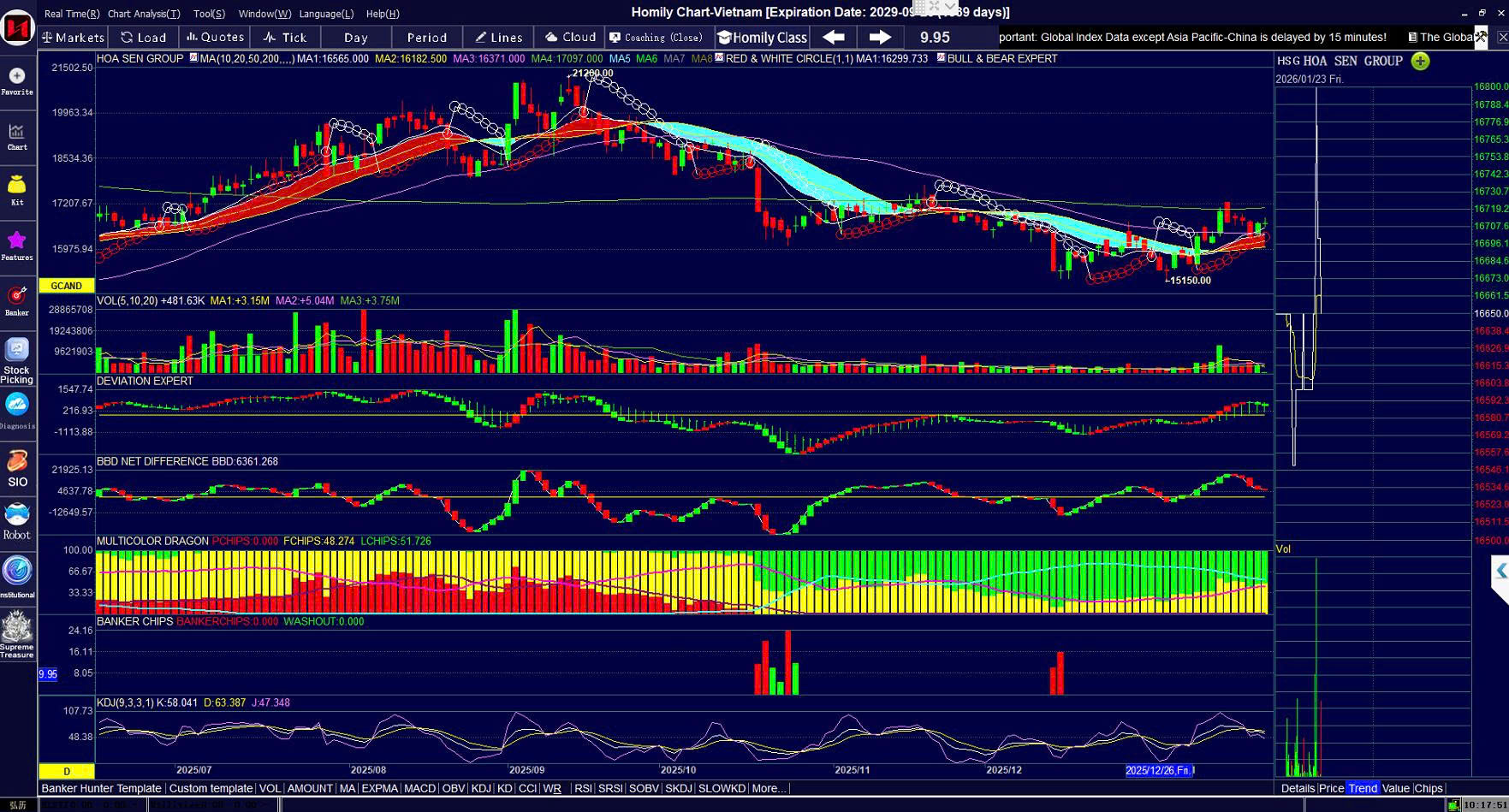 Chart homily (23/1/2026): HSG chưa vô sóng ngay => vẫn còn MCD xanh lá (hàng kẹp nhiều) => do đó, team cứ đưa vô danh sách theo dõi chứ ko vội phân bổ vốn vô nhiều