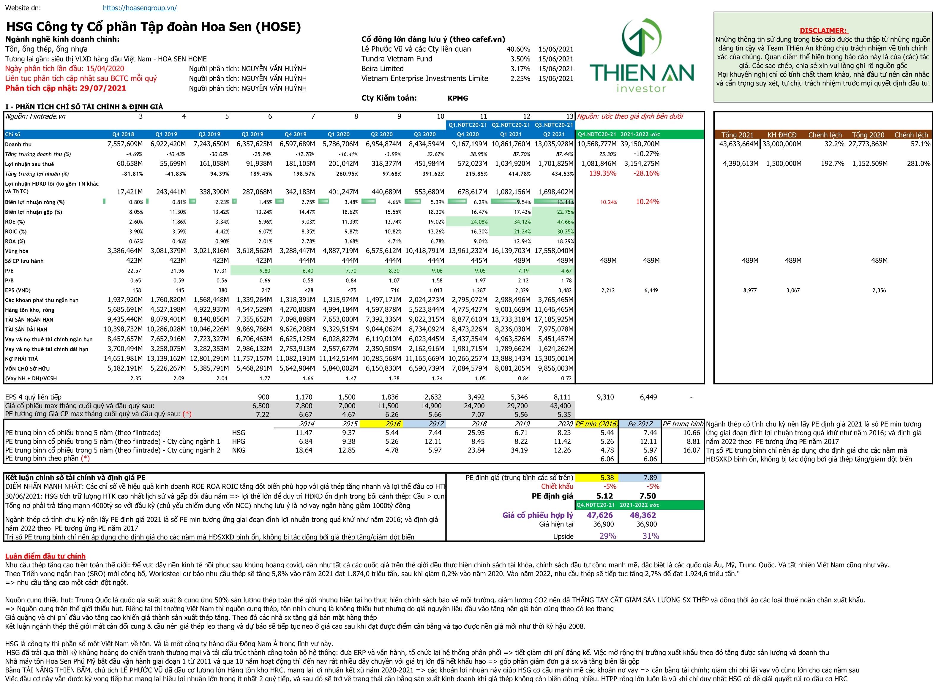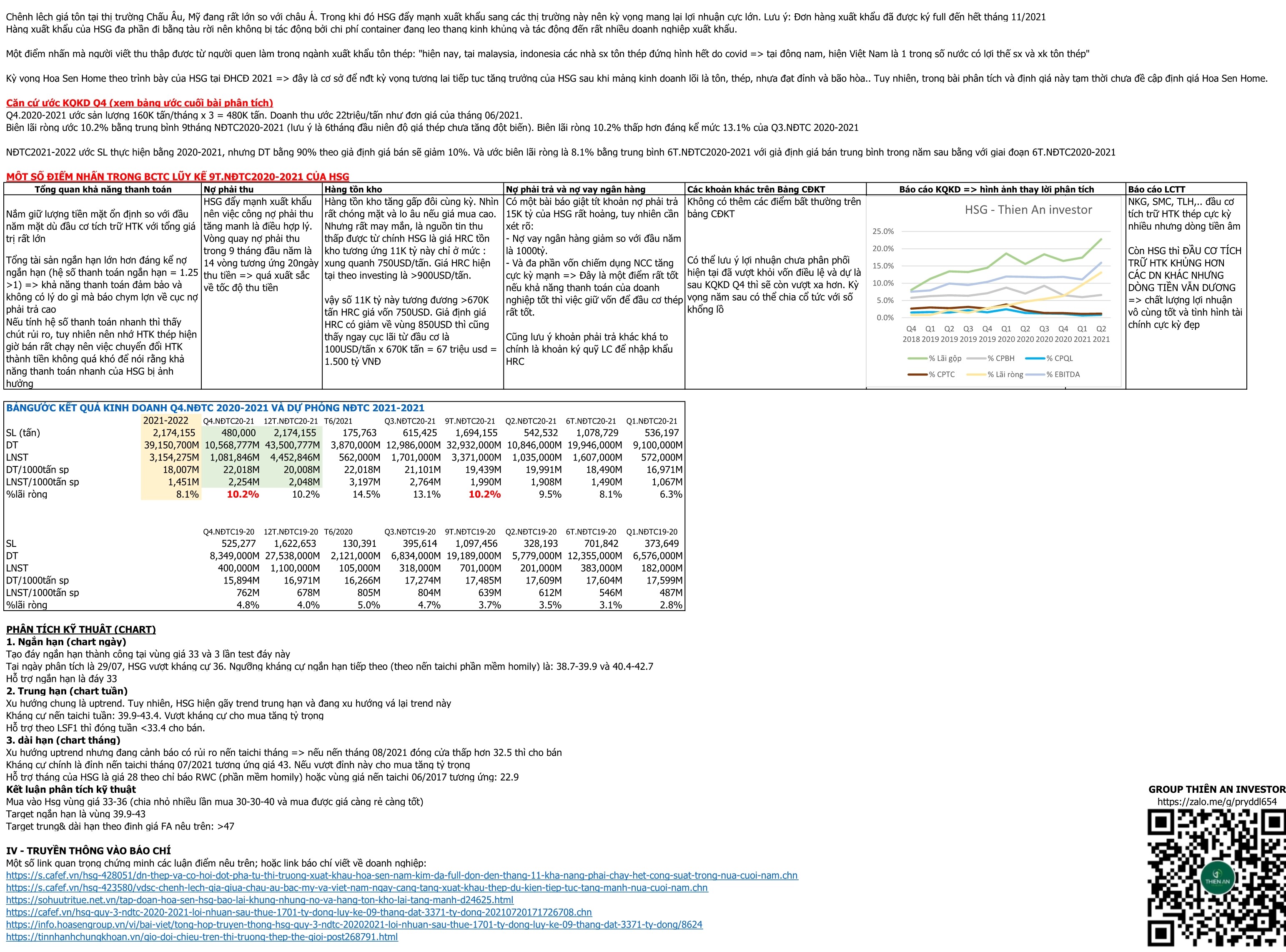 HSG là công ty thị phần số một Việt Nam về tôn. Và là một công ty hàng đầu Đông Nam Á trong lĩnh vự này. HSG đã trải qua thời kỳ khủng hoảng do chiến tranh thương mại và tái cấu trúc thành công toàn bộ hệ thống: đưa ERP và vận hành, tổ chức lại hệ thống phân phối => tiết giảm chi phí đáng kể. Việc mở rộng thị trường xuất khẩu theo đó tăng được sản lượng và doanh thu