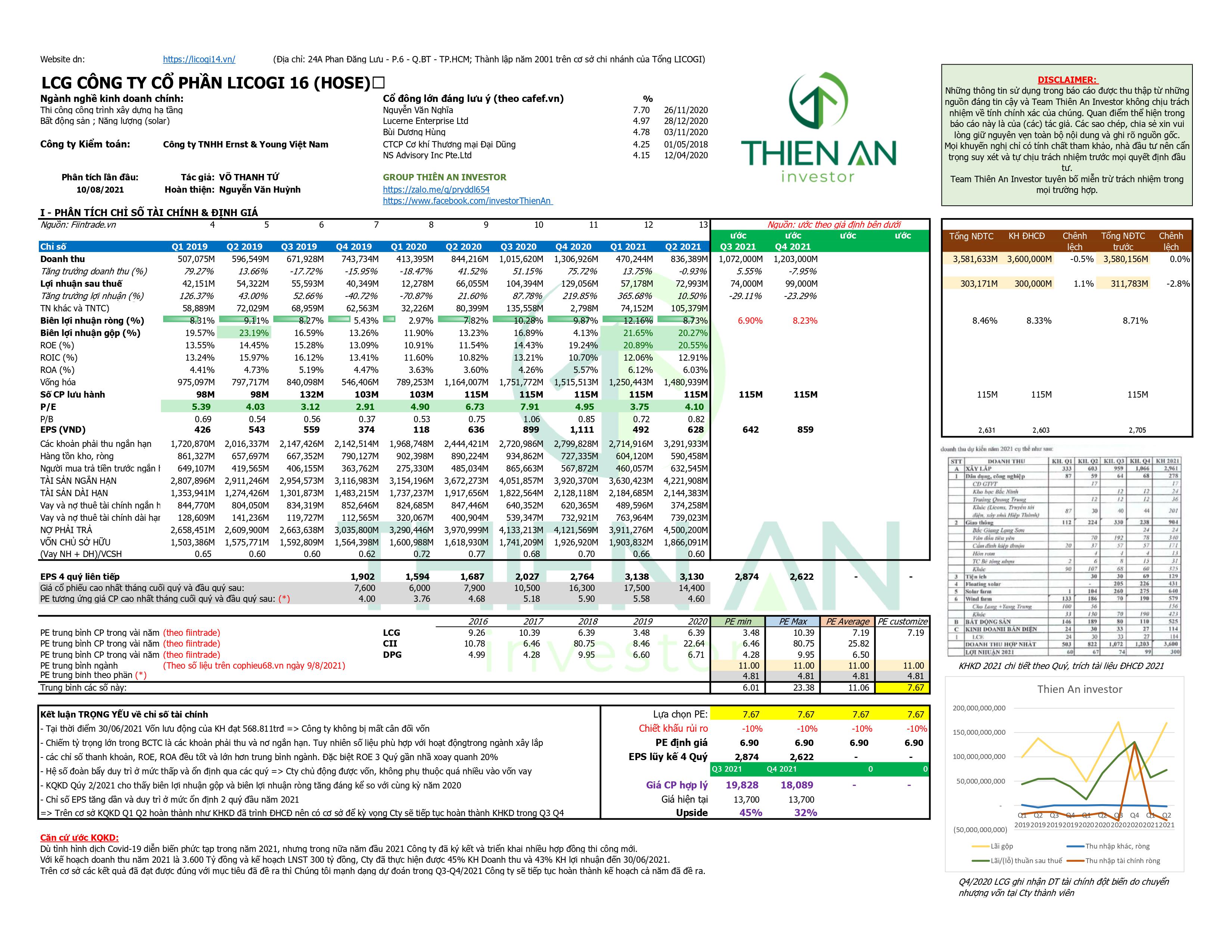 Dù tình hình dịch Covid-19 diễn biến phức tạp trong năm 2021, nhưng trong nữa năm đầu 2021 Công ty đã ký kết và triển khai nhiều hợp đồng thi công mới. Với kế hoạch doanh thu năm 2021 là 3.600 Tỷ đồng và kế hoạch LNST 300 tỷ đồng, Cty đã thực hiện được 45% KH Doanh thu và 43% KH lợi nhuận đến 30/06/2021. Trên cơ sở các kết quả đã đạt được đúng với mục tiêu đã đề ra thì chúng tôi mạnh dạng dự đoán trong Q3-Q4/2021 Công ty sẽ tiếp tục hoàn thành kế hoạch cả năm đã đề ra.