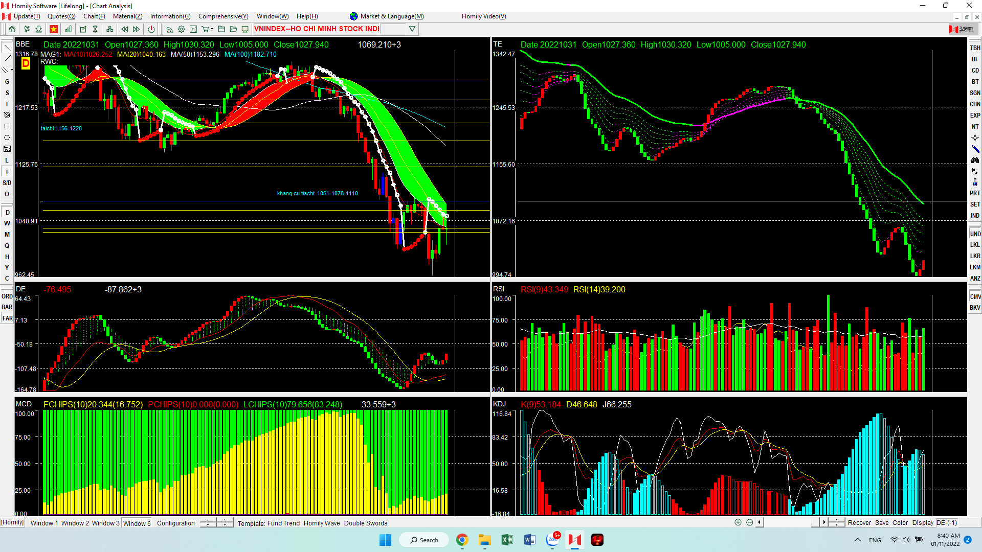- Đồ thị ngày: quá mua. chỉ báo tiến gần về biên trên của kênh giá giảm; Tuy vậy: điểm tích cực là vol vẫn duy trì khá; các chỉ báo dòng tiền đều cho thấy tích cực mặc dù đều đã quá khỏi vùng mua hợp lý