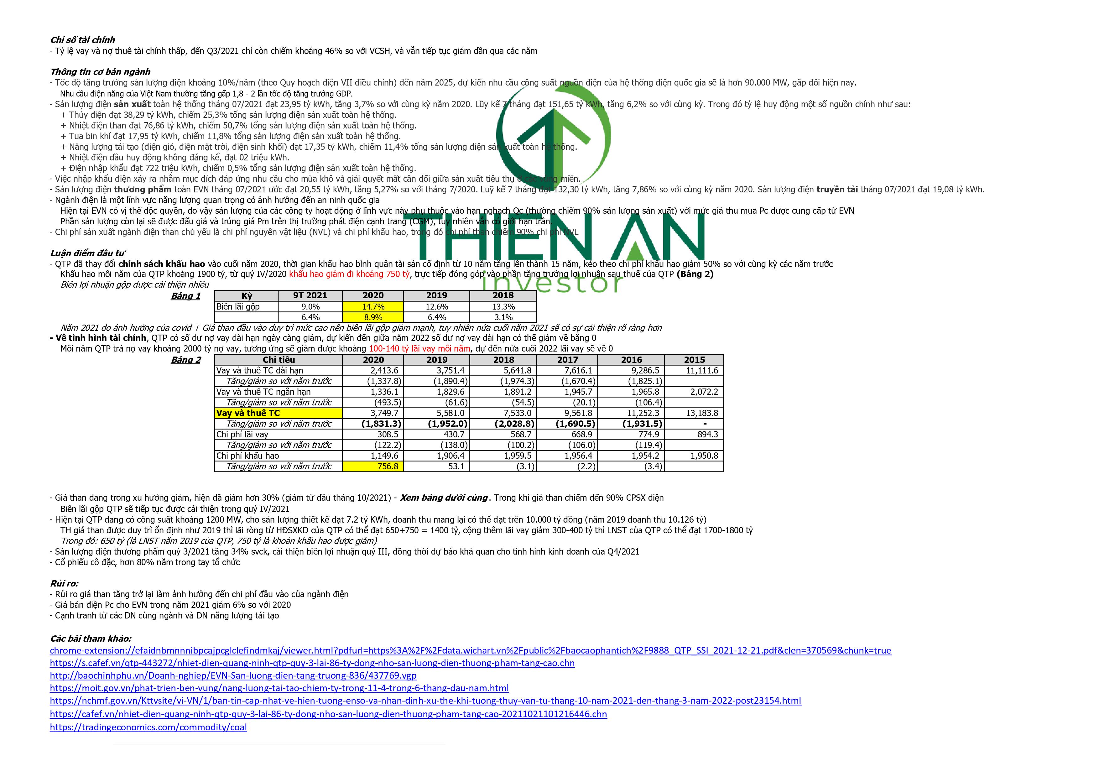QTP đã thay đổi chính sách khấu hao vào cuối năm 2020, thời gian khấu hao bình quân tài sản cố định từ 10 năm tăng lên thành 15 năm, kéo theo chi phí khấu hao giảm 50% so với cùng kỳ các năm trước. Khấu hao mỗi năm của QTP khoảng 1900 tỷ, từ quý IV/2020 khấu hao giảm đi khoảng 750 tỷ, trực tiếp đóng góp vào phần tăng trưởng lợi nhuận sau thuế của QTP