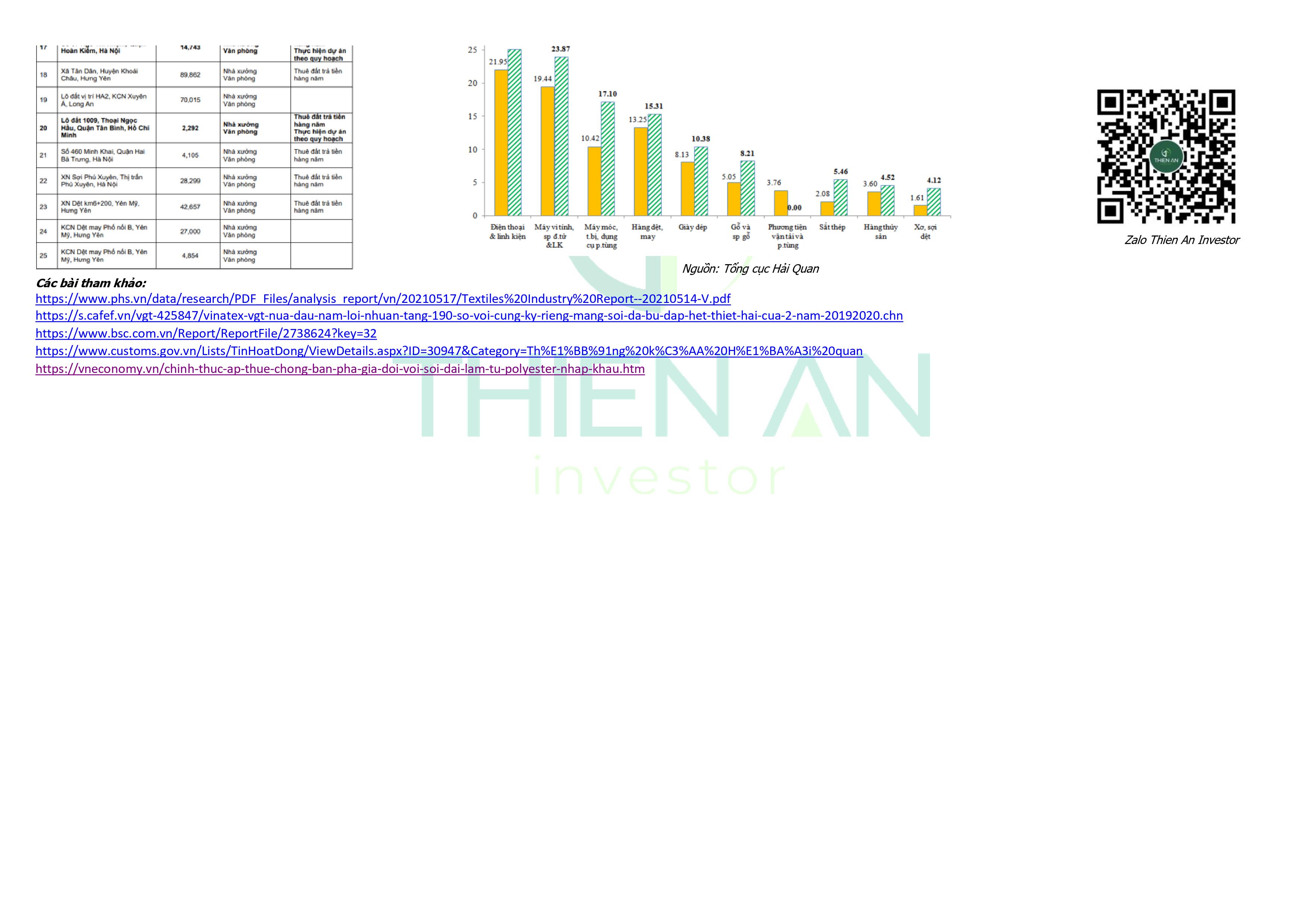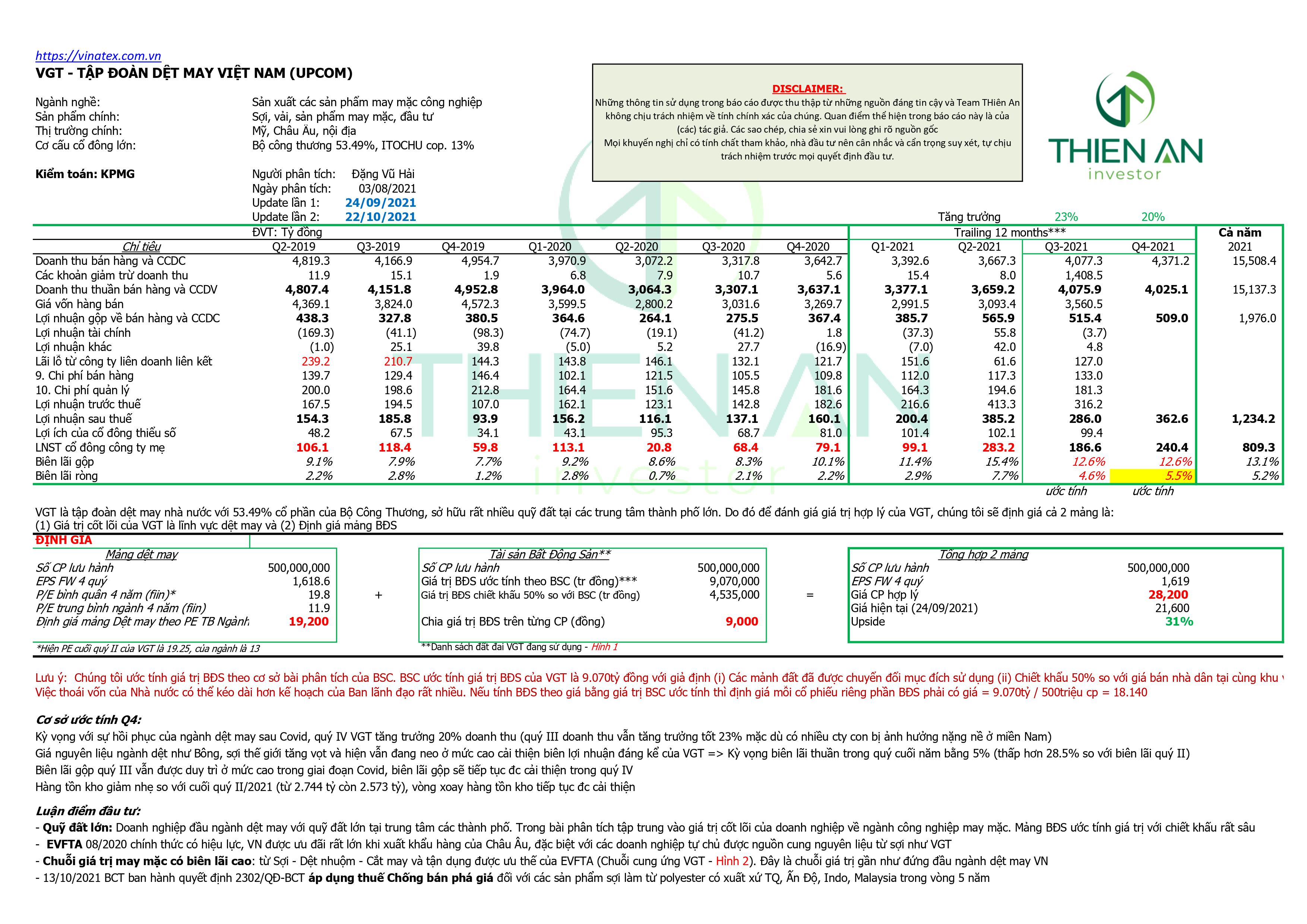 : Doanh nghiệp đầu ngành dệt may với quỹ đất lớn tại trung tâm các thành phố. Trong bài phân tích tập trung vào giá trị cốt lõi của doanh nghiệp về ngành công nghiệp may mặc. Mảng BĐS ước tính giá trị với chiết khấu rất sâu